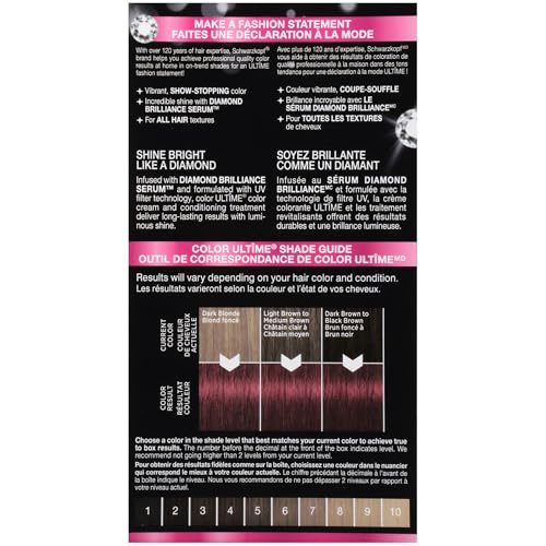 Schwarzkopf Color Ultime Hair Color Cream, 5.22 Ruby Red Hair Color – show-stopping reds for any complexionThis hair color kit will allow you to achieve noticeably vibrant color results and incredible gloss at home. Infused with Diamond Brilliance Serum. It contains special UV filter to provide additional protection. Color Ultime‘s hair dye kit including a conditioner delivers color results with luminous shine from root to tip. We recommend big-volume hairstyles for particularly glamorous red hair color looks! The hair color kit is suitable for all hair textures: straight, coily, curly or wavy. Discover the breakthrough formula of Schwarzkopf color Ultime: it provides vivid color intensity and defies fade-resistant vibrancy for show-stopping color intensity up to 10 weeks! To achieve true to box results, choose a color in the shade level that best matches your current color. We recommend not going beyond 2 levels from your current level.With over 125 years of hair expertise, Schwarzkopf helps you achieve professional quality color results at home in on-trend shades for an ULTIME fashion statement!The product benefits at a glance: