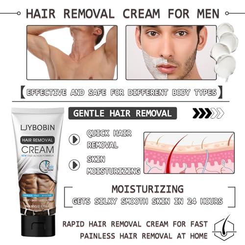 Painless Depilatory Cream for Men – Flawless Hair Removal for All Skin Types, Body, Arms, Legs, Chest