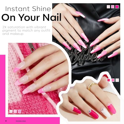 modelones Pink Gel Nail Polish Set 6 Colors, Hot Pink Tones Neon Pink White Gel Polish Magenta Light Soft to Dark 2025 Spring Summer Nail Art Kit for Women Girl Nail Lovers Gift Salon DIY